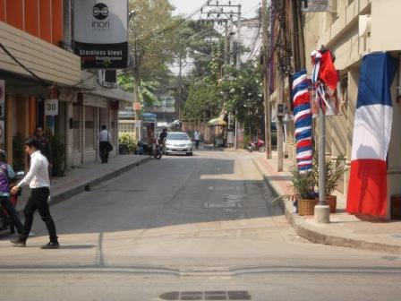Cette rue est le Soï (ruelle en Thaï) qui mène à l’Ambassade de France, Charoenkrung soi 36, qui vient tout juste d’être rebaptisée.