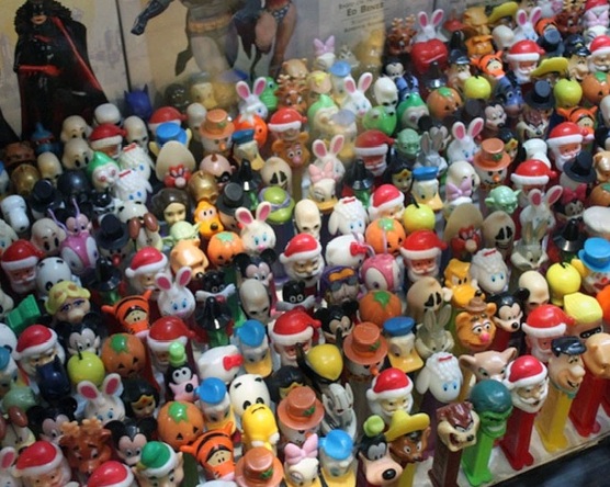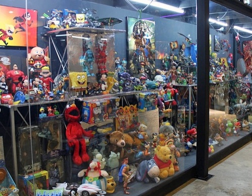 A travers les étagères vous découvrirez toutes sortes de figurines des GI Joe des années 70, de Pixar, Disney, Shrek, Looney Tunes, Simpsons, Predator… et des distributeurs de bonbons PEZ !!!