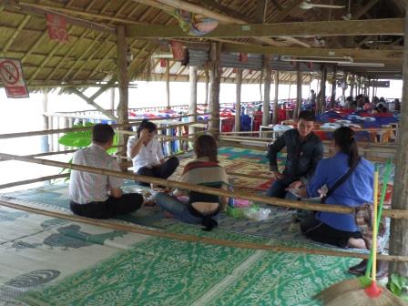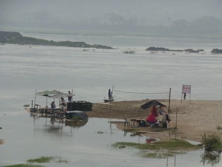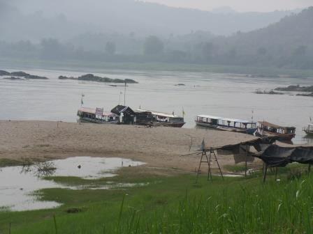 Le Mékong a, ici, la même physionomie que la Loire en France avec des bancs de sable, ce qui se prête peu à l’existence de rapide. Un marché de souvenirs se tient au bord du Mékong.