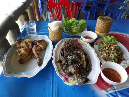 Retour au marché où vous pouvez déjeuner dans un des restaurant au bord du Mékong. Spécialités grillades, surtout le poisson du fleuve enrobé de sel, mais aussi les salades «Larb» (viande hachée parfumée au citron et aux herbes, attention souvent très pimentée) bien sur accompagnés de riz collant. Vous pouvez vous installer à la thaïe sur des nattes mais il y a également des tables et des chaises.