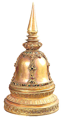 Un stupa miniature en or et décoré de pierres precieuse (hauteur 26 cm)