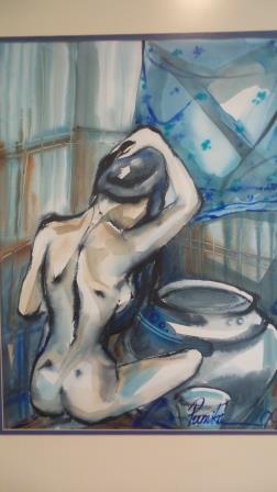 Ce qui est intéressant de voir, c’est le profil des différents artistes qui exposent. Chaque artiste a fourni un mini CV. 32 femmes sur 36 artistes, beaucoup sans profession et retraites, ou si ils sont en activité plutôt cadres supérieurs dans la banque, l’hôtellerie, la direction d’écoles, …