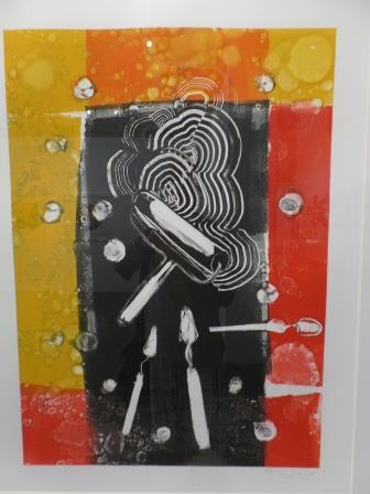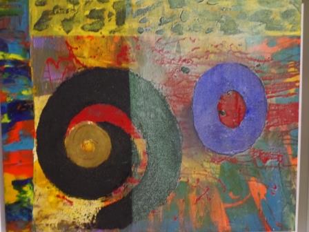 Toujours dans le même style, les toiles sont abstraites mais comportant quelques éléments identifiables.
