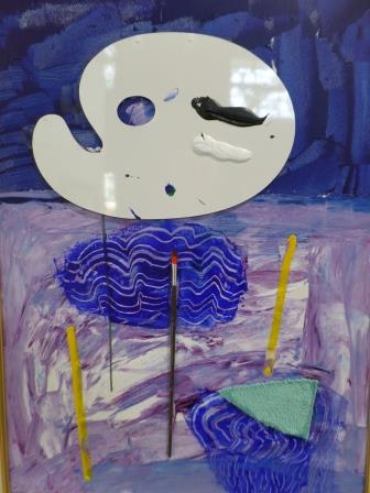 Dans l’article précèdent je vous avais présenté l’artiste et son évolution artistique, cette exposition est intéressante puisqu’elle regroupe des œuvres réalisées en 2014 et donc de suivre cette évolution. Kamol réalise souvent des séries sur un thème avant de passer à un thème diffèrent. Les œuvres de 2014 se concentrent essentiellement sur un thème «les outils de l’artiste» que l’on trouve représentés dans les peintures et les sculptures, la palette, les pinceaux, les rouleaux, les tubes de peinture, les petites truelles, …