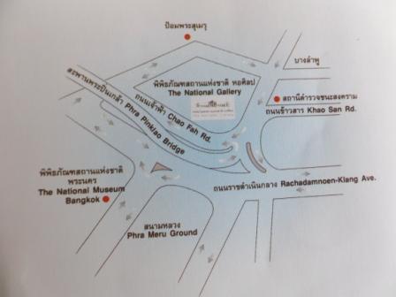La « National Gallery » est située au nord de l’esplanade de Sanam Luang, à 5 minutes à pieds de Khao-San road et du Musée National, accessible par les bus 3, 30, 32, 43, 80, 91, 123 et 169.