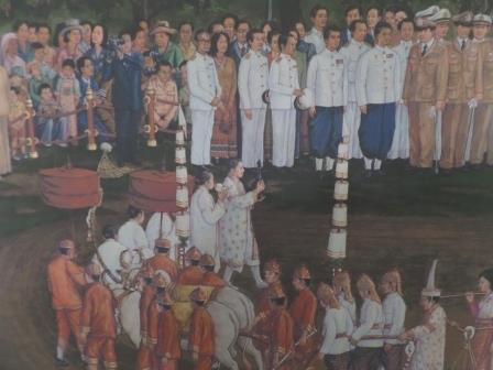 Le Roi Bhumibol Adulyadej accéda au trône le 9 juin 1946 et son couronnement eu lieu le 5 mai 1950. Il fit revivre certaines cérémonies traditionnelles que l’on retrouve décrites ici, comme la cérémonie du labour royal (article du 6 mai 2013) ou la procession des barges royales (article du 1er novembre 2012) pour la cérémonie de Katin.