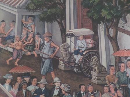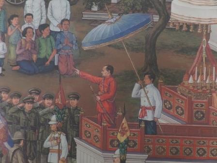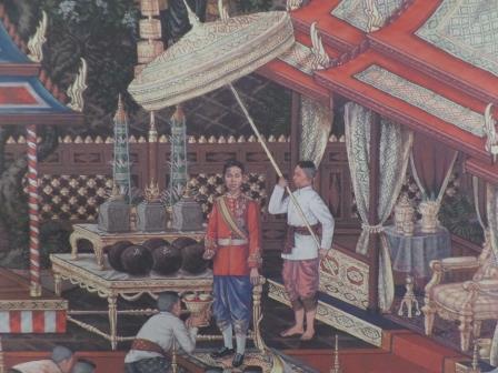 Détail amusant, le Roi dans le dessin préparatoire porte déjà sa célèbre moustache, le Roi Rama IX, soucieux de l’exactitude, fit modifier ce détail, Chulalongkorn n’adopta sa moustache que plus tard.