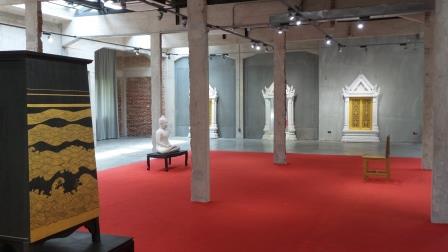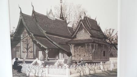Une partie de l’exposition est consacrée à la Thaïlande et au Laos, qui ont des temples du même type; les œuvres exposées ont le style des œuvres qui ont fait le renom de l’artiste.