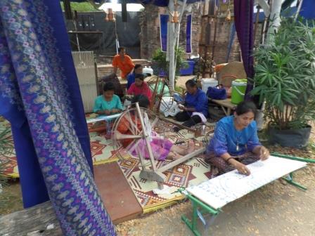 Mais la fête c’est aussi l’occasion de démonstrations, spectacles donnes par des associations de la ville. L’occasion d’admirer les travaux traditionnels, comme le tissage, avec des femmes qui effectuent toutes les étapes : le cardage, le filage et le tissage.