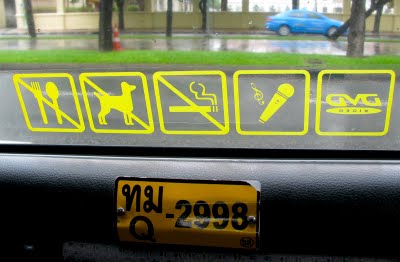 Le soleil en Thaïlande étant particulièrement chaud, vous découvrirez dans les taxis des pare soleil allant des modèles sobres et classiques, aux modèles plus amusants et enfantins en passant par ceux offerts par des sociétés (hôtels, restaurants, banques…) et servant de support publicitaire.